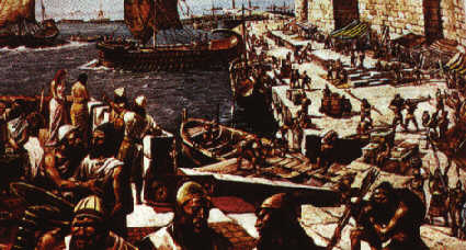 "'Merchants they were...the fearless navigators who, when others were still hugging the coastline, first discovered and used the Pole Star, and who guarded the secrets of their trade routes, knowledge of currents and winds...They framed the first known maritime laws and their great ships were the East Indiamen of the ancient world, credited by Herodotus with the first circumnavigation of Africa. Their borders, as Ezekiel wrote of Tyre, were figuratively as well as literally "in the midst of the seas." To a still greater extent than the Vikings, Dutch or Portuguese after them, they left little mark on land. Their claim is on the imagination.'